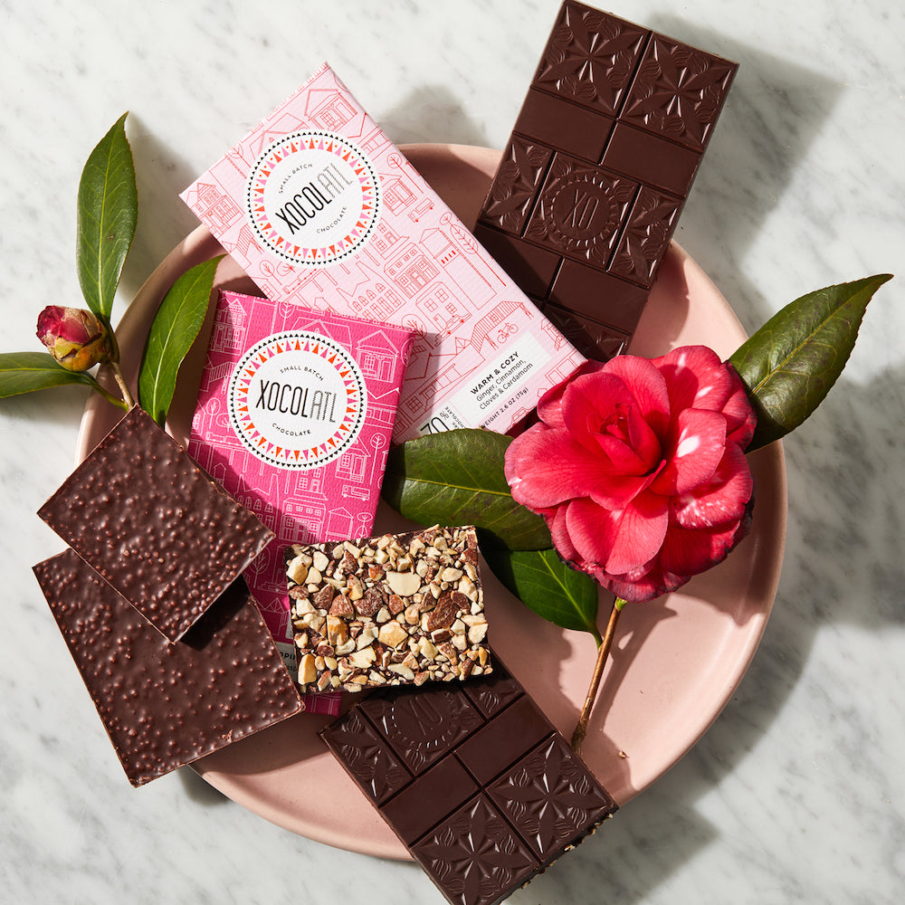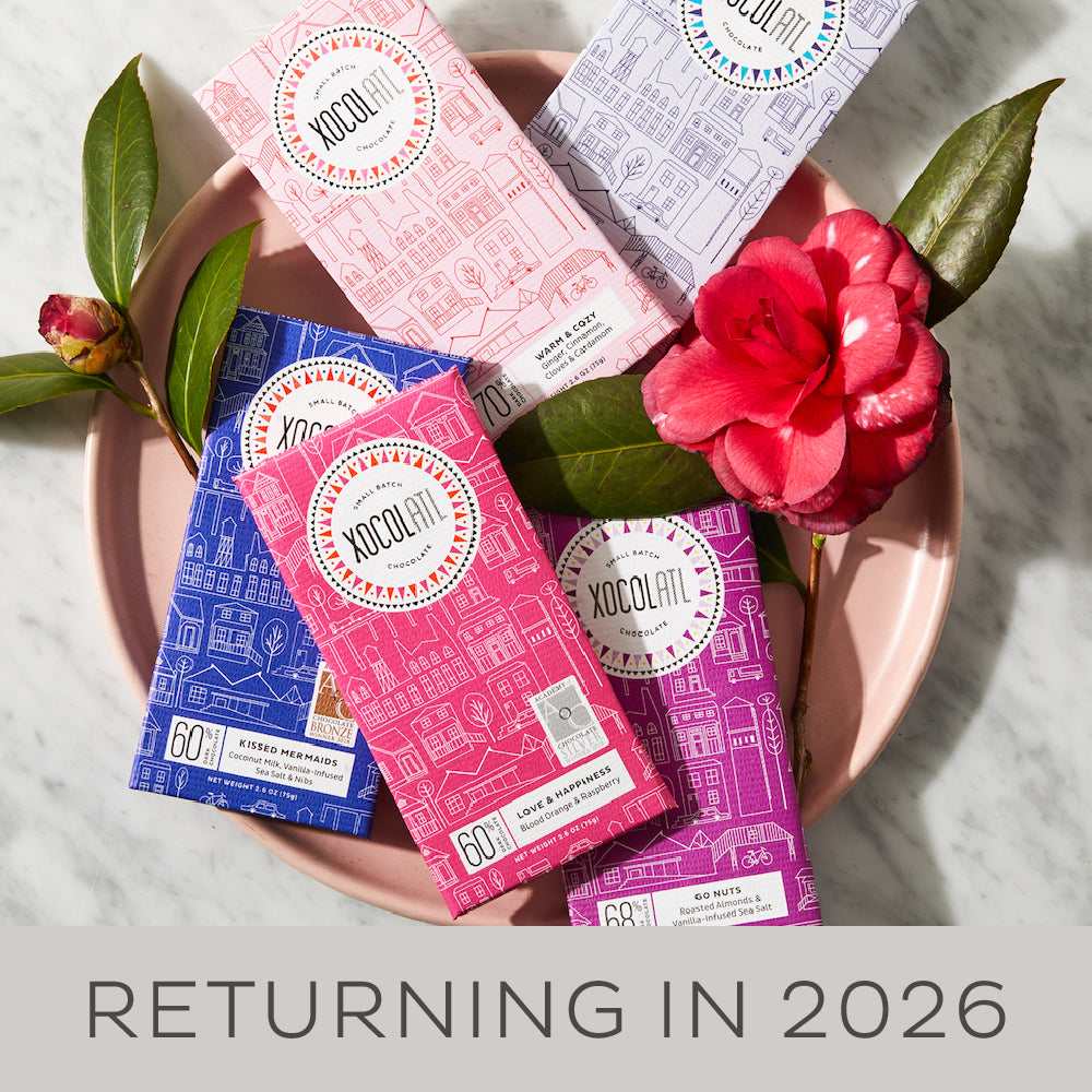 Warm & Cozy — This beloved flavor is only available seasonally and combines the familiar flavors of warm baking spices — cinnamon, cardamom, and cloves--with our smooth 70% dark chocolate for some toe-curling comfort through the winter and early spring.