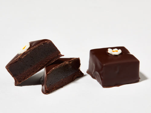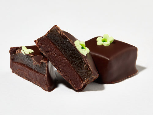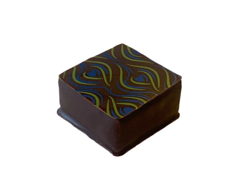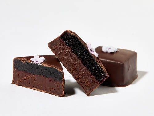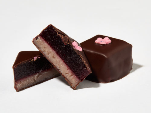 Blackberry puree, sugar, glucose, pectin, lemon juice, dark chocolate (cacao, cane sugar, cocoa butter*), coconut cream, coconut oil*, Crème de Violette
