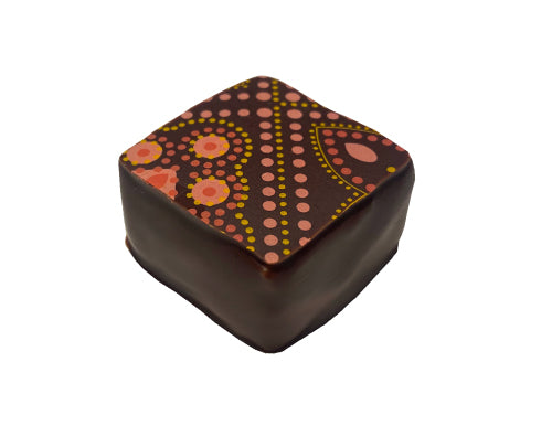 Dark chocolate (cacao, cane sugar*, cocoa butter*), raspberry puree (raspberry, sugar), glucose, coconut milk powder* , coconut oil*, elderberry sugar (sugar, dried elderberry)