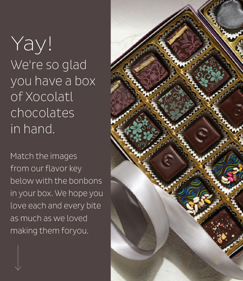 Cane sugar*, glucose, rice milk (brown rice, water), lavender, coconut oil*, vanilla, salt, dark chocolate (cacao, cane sugar*, cocoa butter*)
